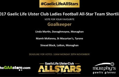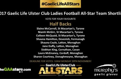 Congratulations to the 2017 Gaelic Life Ulster Club All Stars Camogie Team of the Year. Each All Star as listed will receive a complimentary ticket to the Gala Awards Night in the Hillgrove Hotel on Friday 12th January 2018. Camogie All Stars can contact the marketing department on the number below for information in relation […]