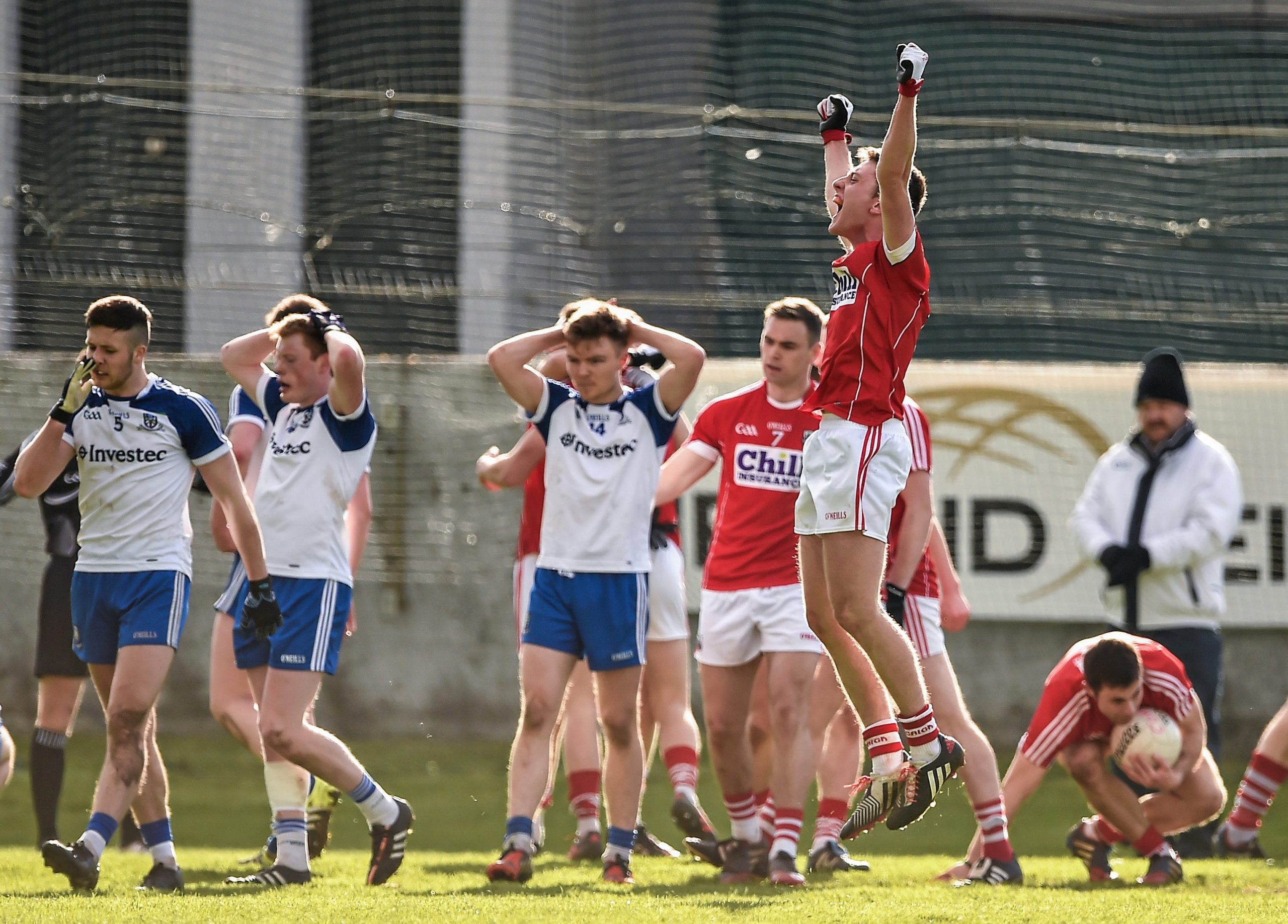 10 YEARS AGO…Monaghan and Cork players react at the end of the All-Ireland U-21 semi-final