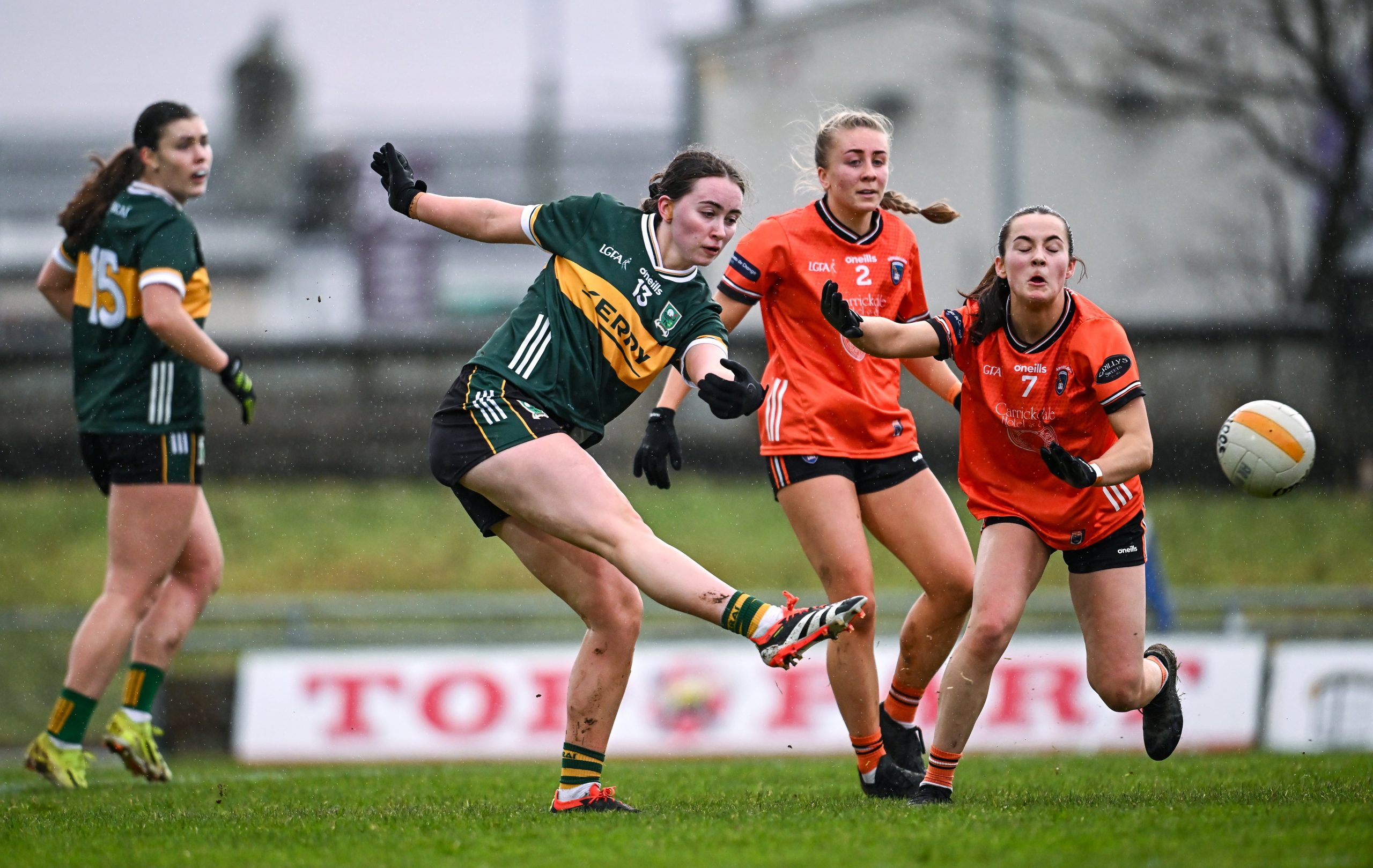 The Kingdom almost had the ball in the net twice in the first quarter, but it was the Orchard County who rattled it first with a goal from Blaithin Mackin, well set up by Lauren McConville in the tenth minute. A couple of points followed and the home side led 1-3 to 0-1 but Leah Boyle socre the next point and on 20 minutes Siofra O’Shea drilled the ball to the roof of the net for the Kingdom. The aforementioned Armagh frees concluded the half in a close contest between these two familiar foes. Kerry were reduced to 14 players when Aoife Dillane was sinbinned before the break and that certainly helped Armagh’s cause as they came out strong in the second half.