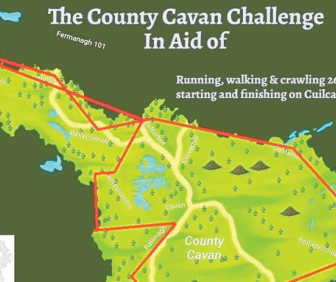 Donnelly will run, walk and hike 260km in total starting and finishing on Cuilcagh mountain. The challenge will take him across the length and breadth of the county – from Blacklion, to Belturbet, to Ballyconnell, to Cootehill, to Kingscourt and Virginia…it goes on.